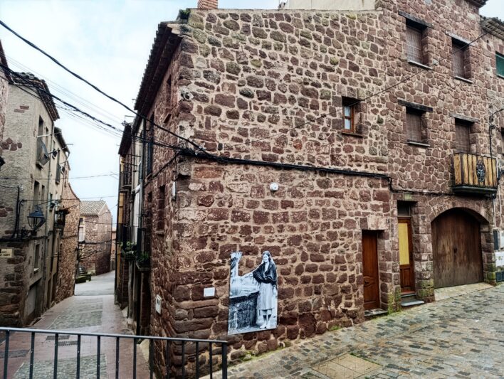 Nos gustaron especialmente unas fotografías que están diseminadas por todo el pueblo y en las que se ve a personas que vivieron en Prades y al lado una anécdota de su vida.