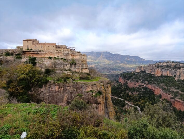 El lugar ofrece unas vistas espectaculares de la Sierra de Montsant, la Gritella y a las Montañas de Prades.De Prades a Siurana en coche hay una media hora y aunque no es una carretera complicada, sí he de deciros que hay muchas curvas y no es de extrañar porque el pueblo está encaramado en la cima de un acantilado a más de 730 metros de altitud. El hecho de que esté en un lugar tan inexpugnable fue el motivo de que Siurana fuese el último reducto de la Reconquista en Catalunya (si vais, entenderéis perfectamente lo que digo).